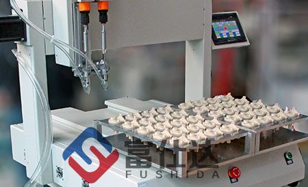 產(chǎn)品有三顆螺絲需要緊固,為了提高生產(chǎn)效率,這里采用富 仕達(dá)雙工位,雙平臺(tái)坐標(biāo)式自動(dòng)鎖螺絲機(jī)。