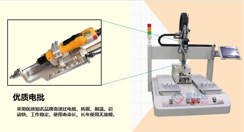 雙平臺(tái)坐標(biāo)式自動(dòng)打螺絲機(jī),即富仕達(dá)雙工位全自動(dòng)鎖螺絲機(jī),設(shè)備主要由自動(dòng)送釘機(jī)、逐點(diǎn)鎖付系統(tǒng)、PLC控制系統(tǒng)、鎖螺絲機(jī)智能控制程序等構(gòu)成,通過對(duì)產(chǎn)品螺絲孔位X\Y\Z三維坐標(biāo)點(diǎn)位,執(zhí)行鎖付系統(tǒng)定位,重復(fù)定位精度較高:±0.02mm,適合螺絲密集型產(chǎn)品及型號(hào)多樣產(chǎn)品生產(chǎn)要求。